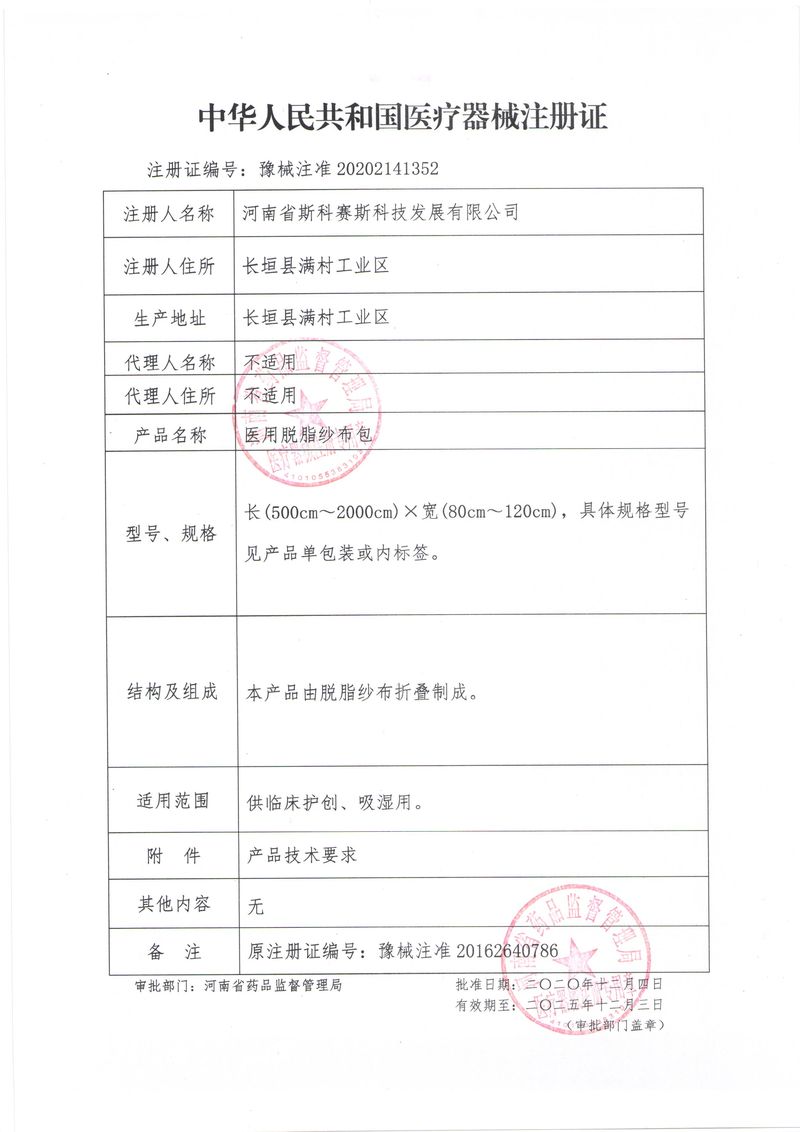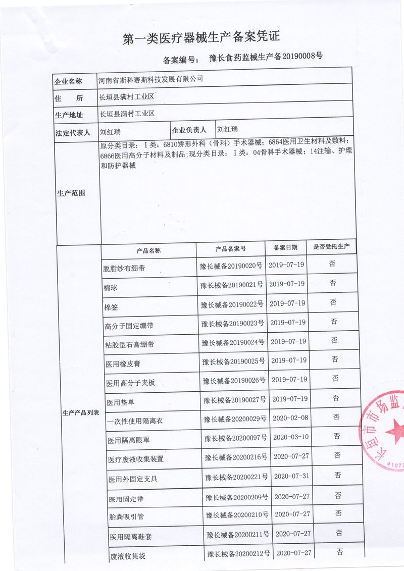 河南省斯科賽斯科技發(fā)展有限公司創(chuàng)建于 2011 年,位于“中國(guó)醫(yī)療耗材之都”- 河南省長(zhǎng)垣縣,西臨 308 省道,南靠新菏鐵路,北依長(zhǎng)濟(jì)高速,交通便捷,經(jīng)濟(jì)發(fā)達(dá),環(huán)境優(yōu)美。斯科賽斯積極進(jìn)入醫(yī)療健康和服務(wù)領(lǐng)域,秉承為用戶創(chuàng)造價(jià)值的理念,專注于醫(yī)用耗材解決方案的研發(fā)和運(yùn)營(yíng),并為用戶提供完善的產(chǎn)品解決方案;  斯科賽斯主要生產(chǎn)醫(yī)用麻醉系列、醫(yī)用高分子系列、醫(yī)用敷料包系列、醫(yī)用無紡布系列、醫(yī)用防護(hù)系列、醫(yī)用脫脂棉系列、生物材料制品類等七大類、100 多個(gè)品種、400 多個(gè)規(guī)格的產(chǎn)品。公司占地面積約 30000 平方米,建筑面積20000 平方米,擁有 10 萬級(jí)的凈化車間總面積 10000 平方米。擁有國(guó)際先進(jìn)水平的生產(chǎn)設(shè)備和檢測(cè)儀器,技術(shù)裝備精良,檢測(cè)手段完善,為醫(yī)療行業(yè)的不斷發(fā)展進(jìn)步提供保障。公司順利通過 ISO9001、ISO13485 質(zhì)量管理體系認(rèn)證。  斯科賽斯堅(jiān)持研發(fā)高科技新產(chǎn)品,力爭(zhēng)在醫(yī)療器械關(guān)鍵領(lǐng)域取得技術(shù)和研發(fā)的重大突破;立足國(guó)內(nèi)和國(guó)際兩個(gè)市場(chǎng),逐步實(shí)現(xiàn)管理理念、經(jīng)營(yíng)機(jī)制、人力資源、技術(shù)、產(chǎn)品、市場(chǎng)等全方位對(duì)接,提高企業(yè)的核心競(jìng)爭(zhēng)力;過去的歲月里,斯科賽斯砥礪前行,誠(chéng)信務(wù)實(shí),銳意進(jìn)取,不斷創(chuàng)新,用自己的睿智和辛勞,以富有責(zé)任感的使命,在探索中追求,在追求中超越,致力于成為值得信賴的醫(yī)療用品生產(chǎn)企業(yè)!在未來的日子里,斯科賽斯將一如既往豪情滿懷,信心百倍,攜手并肩,執(zhí)著追求,向更高的的目標(biāo)前進(jìn),鑄造新的輝煌!